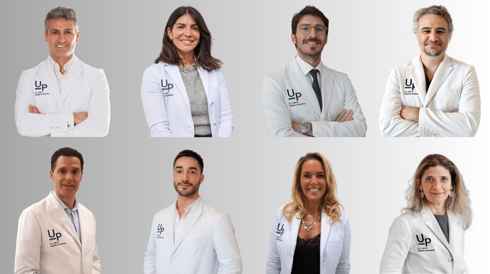 A equipa Up Clinic é composta por um corpo clínico altamente especializado, que integra cirurgiões plásticos, médicos de medicina estética, uma médica especializada em Smart Aging, nutricionista, enfermeiras e fisioterapeutas, assegurando uma abordagem completa e multidisciplinar em todas as áreas de atuação. Este grupo de profissionais trabalha de forma integrada, partilhando conhecimento e experiência para proporcionar aos pacientes a melhor resposta clínica, sempre com foco na inovação, na personalização dos tratamentos e na excelência dos resultados.